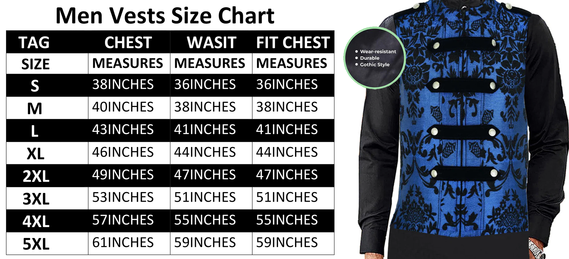 Dark Rock Blue Vest Gothic Jacket Military Uniform Rock Band Vest Goth Steampunk