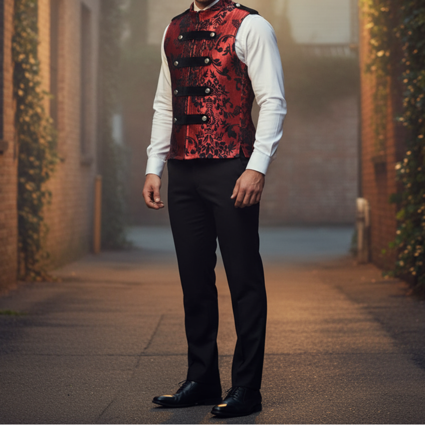 Dark Rock Red Vest Gothic Jacket Military Uniform Rock Band Vest Goth Steampunk