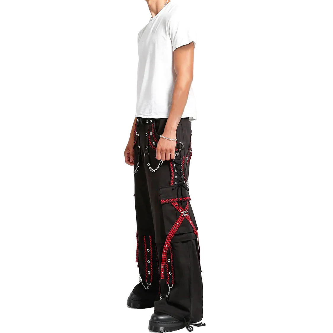 EXTREME BONDAGE GOTHIC PUNK ROCKER CYBER GOTH RED & BLACK STEAMPUNK BIKER PANTS