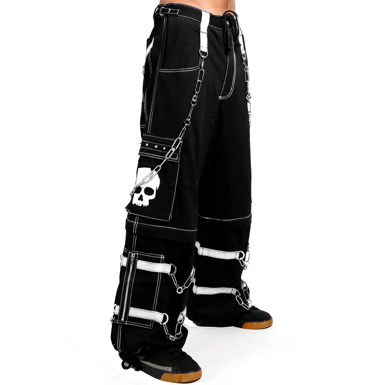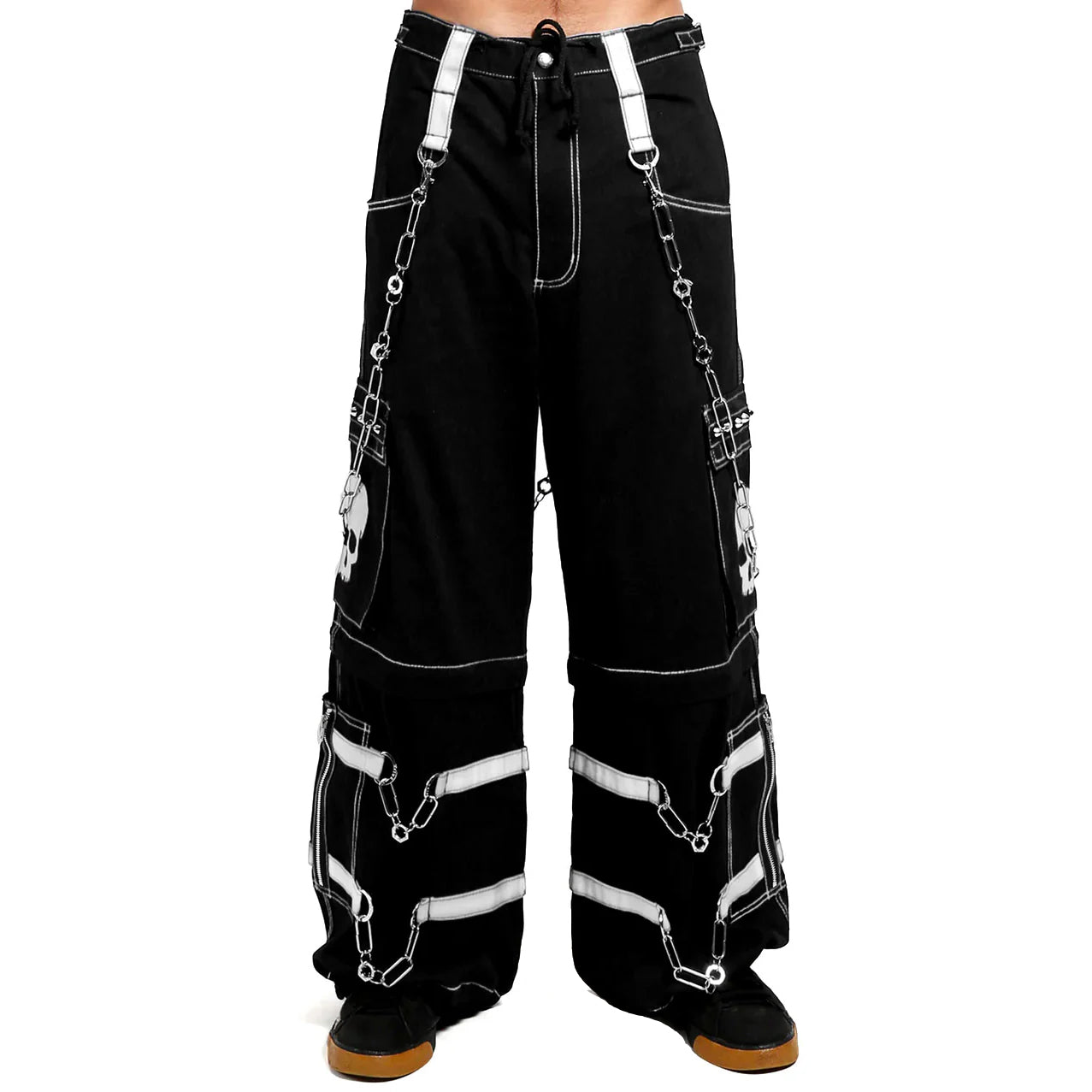 Gothic Bondage Black Skull Zip Off Pants Black & Amp White Alternative Punk Rock Emo Trouser Pant Usa