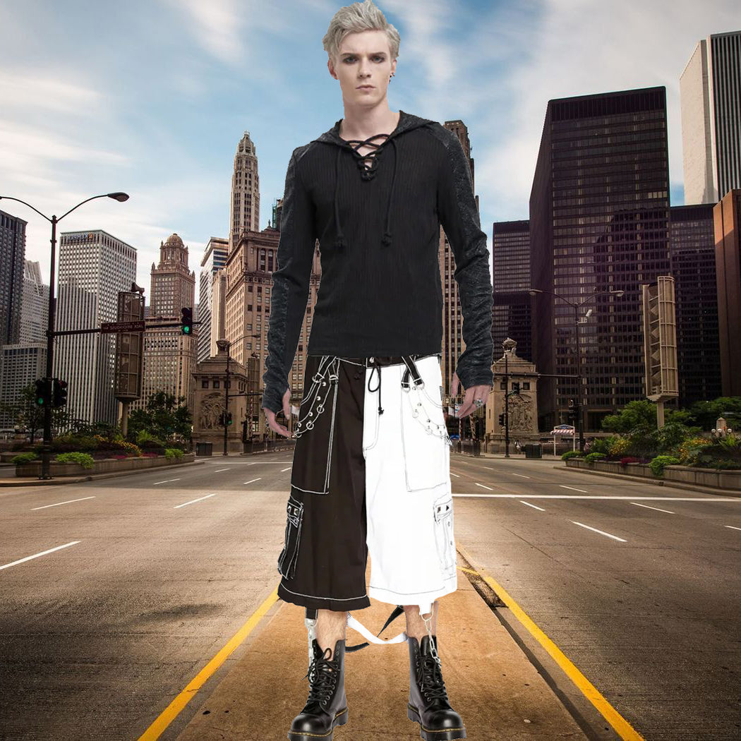 Gothic Bondage Men's Alternative Punk Rock White Emo Shorts