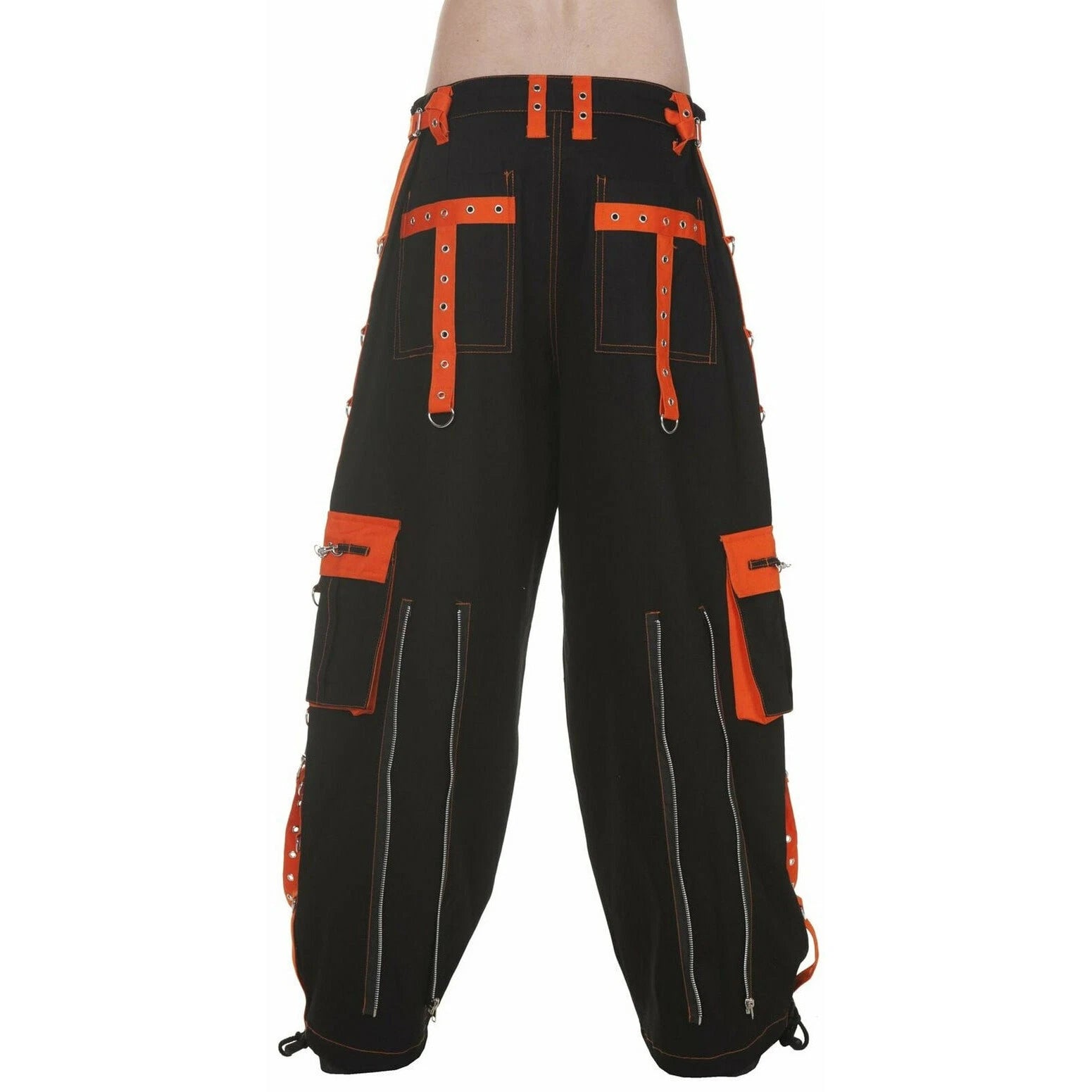 Gothic Men's Handmade Bondage 4 Pocket Dead Thread Trouser Punk Rock Black Orange Pant