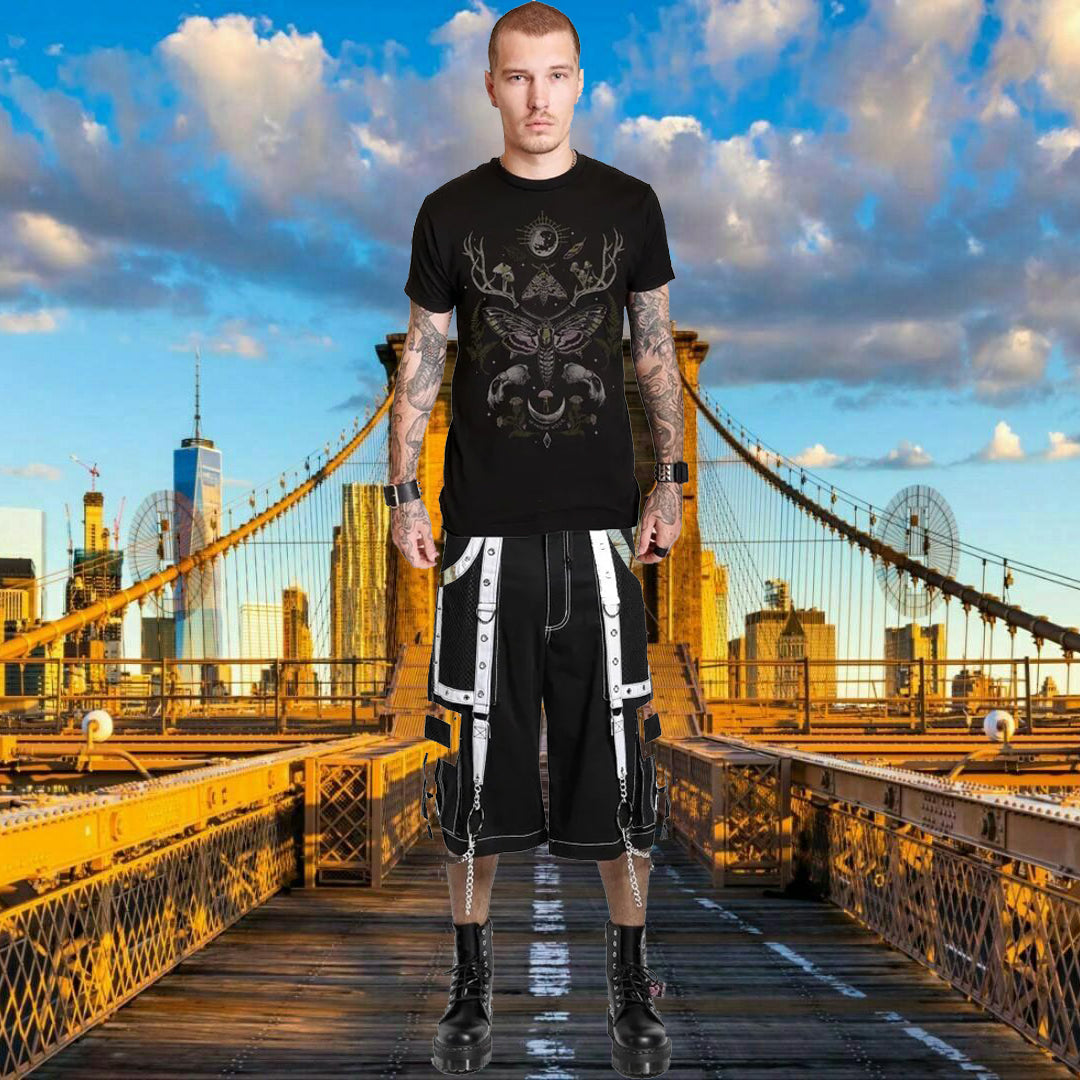 Gothic Mens Handmade Bondage Gothic Cyber Short Chain Techno Rock Punk Shorts