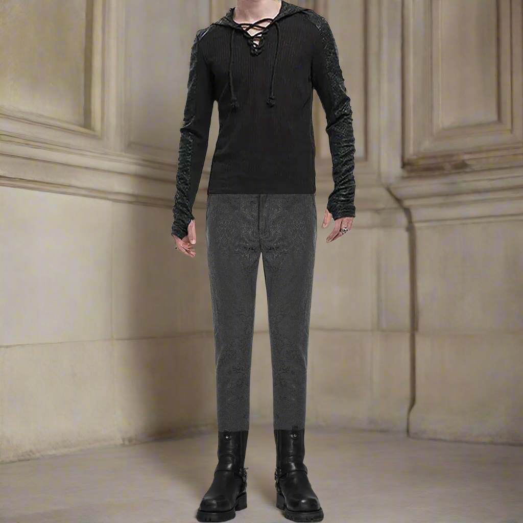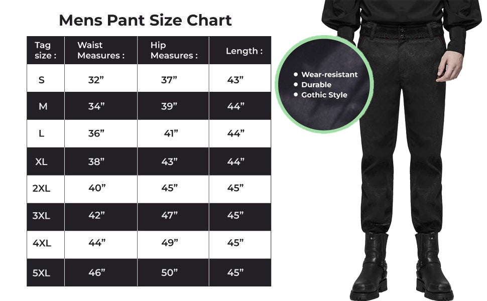 Gothic Men's Pants Trousers Black Brocade Maroon Velvet Steampunk VTG Vampire