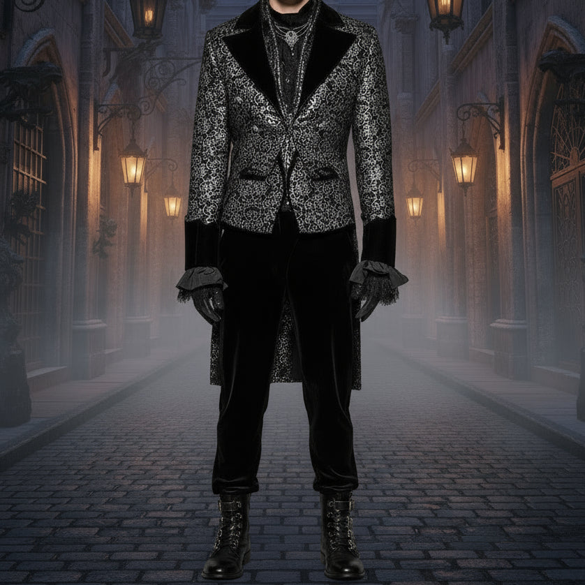 Gothic Steampunk Metal Texture Jacquard Swallow Tail Coat Jacket