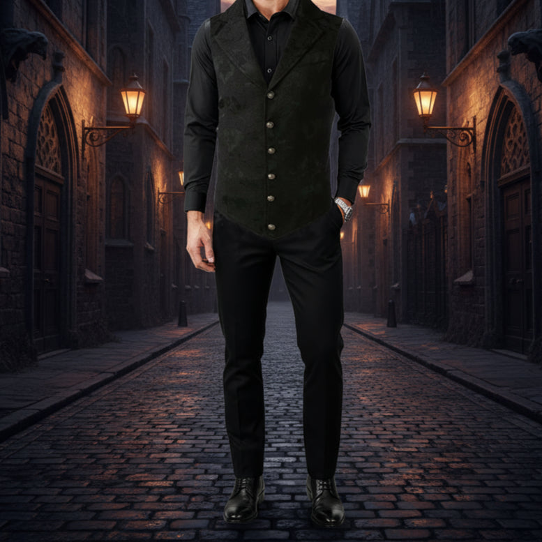 Handmade Black Men's Victorian Suit Gentleman Vest Steampunk Gothic Waistcoat/Usa