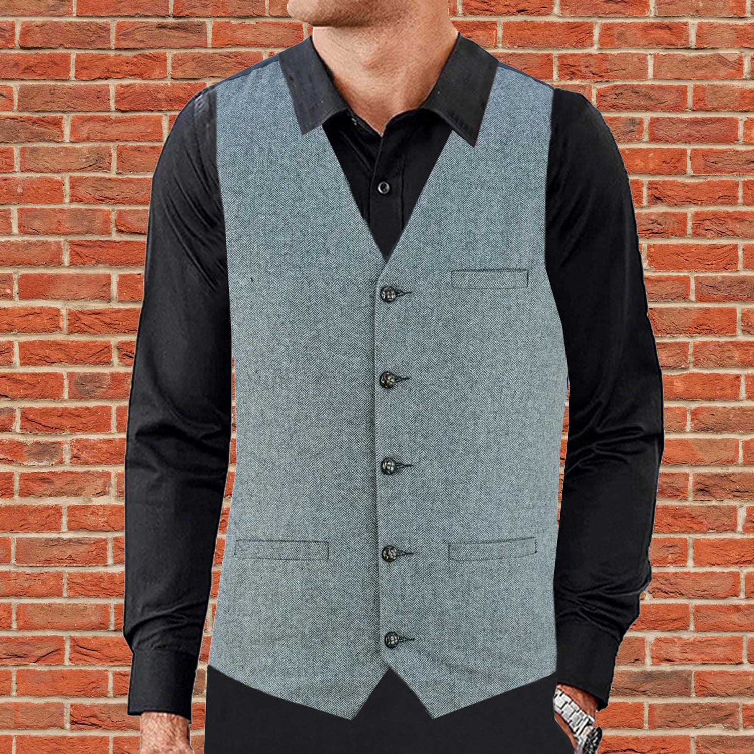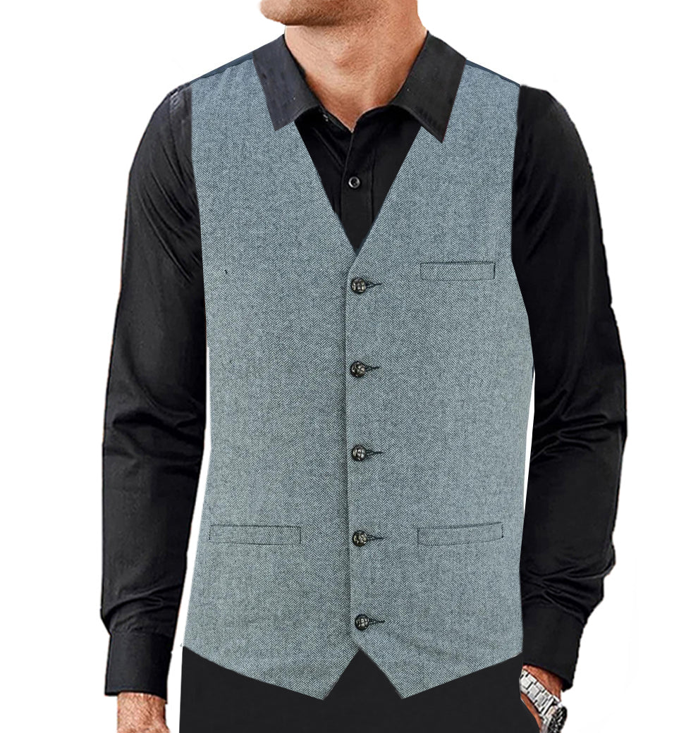 Men Herringbone Wool Blend Tweed Vest Premium Grey Waistcoat Suit Vest V Neck Slim Fit Waistcoat/USA