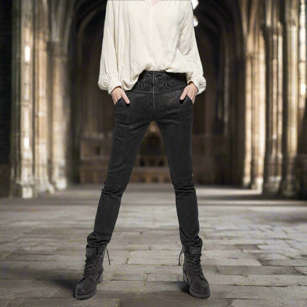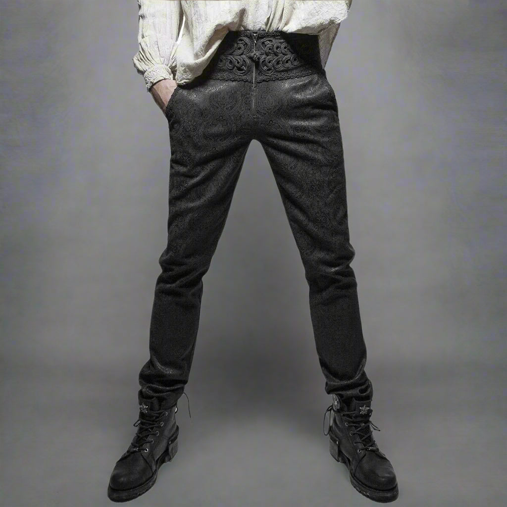Men's Apocrypha Trousers Pants Steampunk Black Brocade Vintage Gothic Victorian