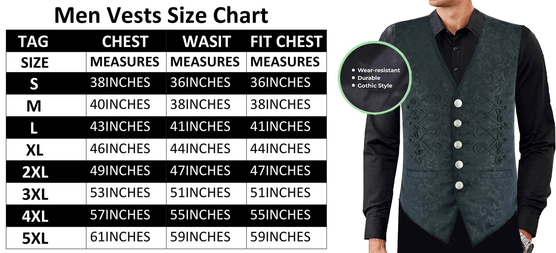 Men's Brocade Vest Waistcoat Black Damask Velvet Gothic Steampunk Renaissance