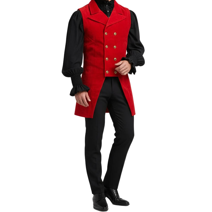 Men's Double Breasted Governor Vest Waistcoat VTG Brocade Gothic Steampunk/Red Velvet