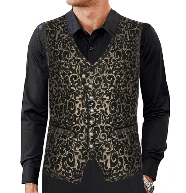 Men's Gothic Waistcoat Vest Gold Paisley Velvet Steampunk Regency/Victorian Suit Vest Steampunk
