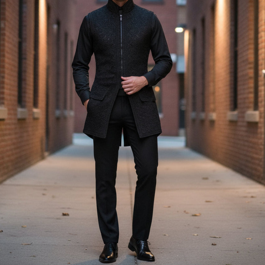 Men's Long Waistcoat Vest Black Gothic Steampunk Victorian Aristocrat