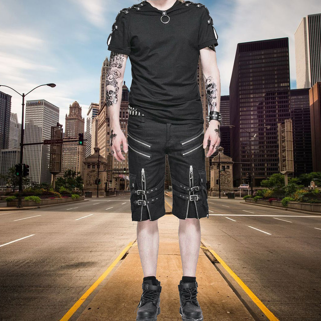 Men's Steampunk Casual Shorts Black Belt Rock Zipper Gothic Summer Shorts
