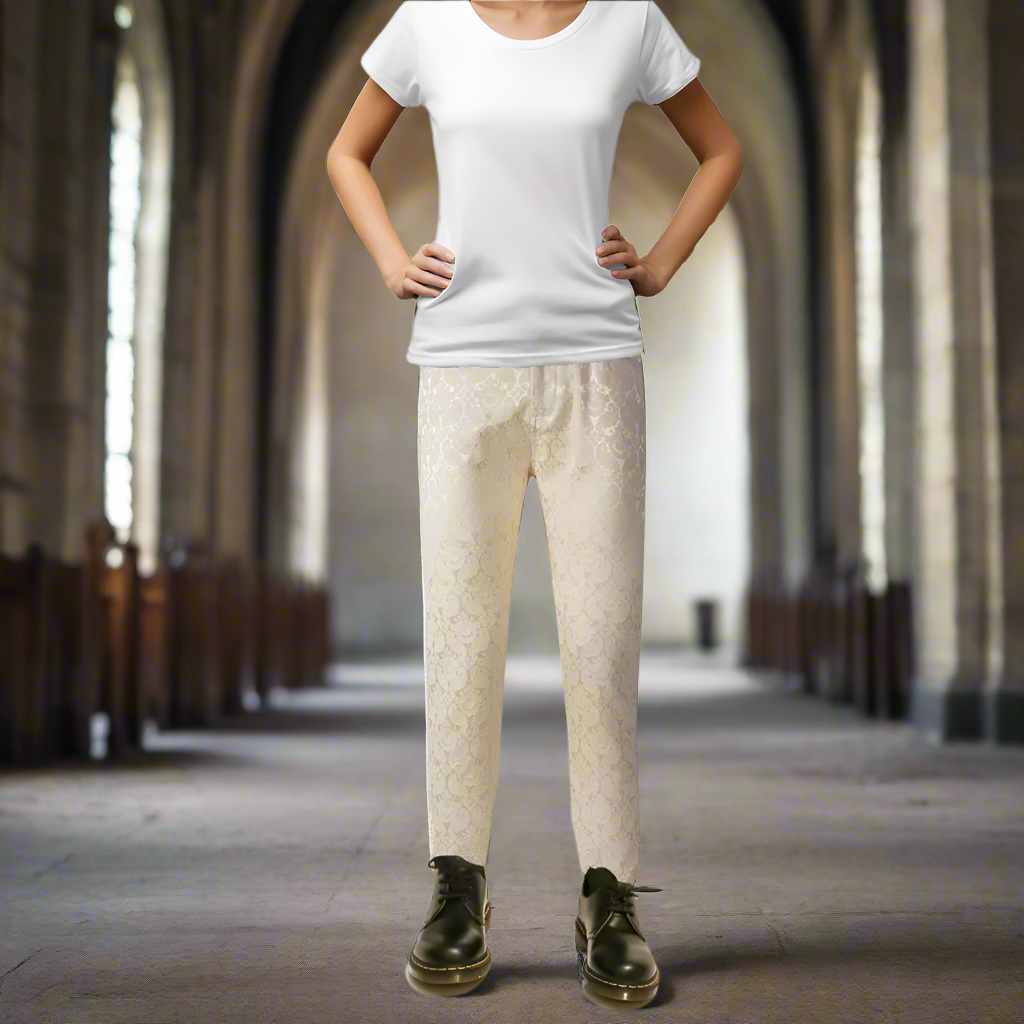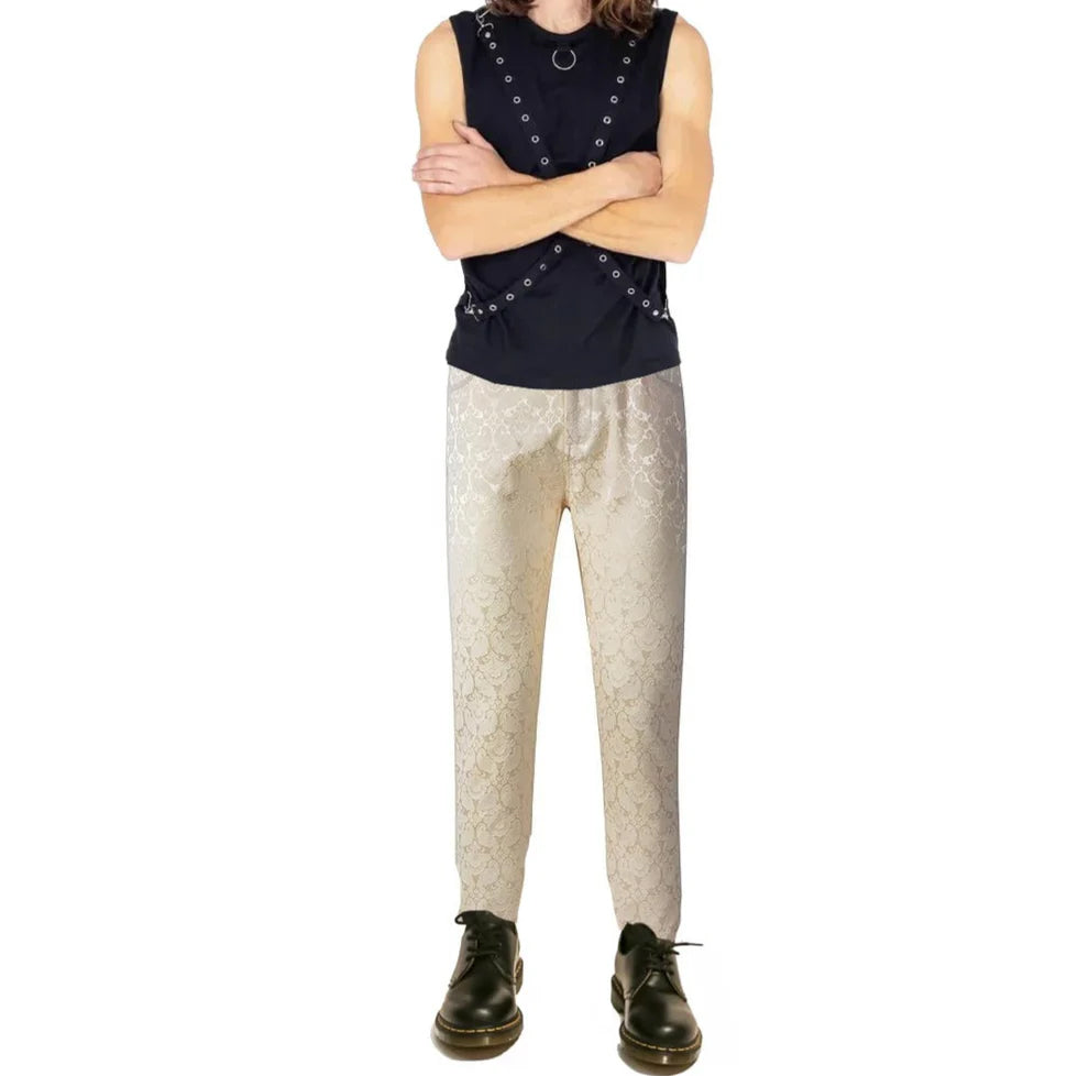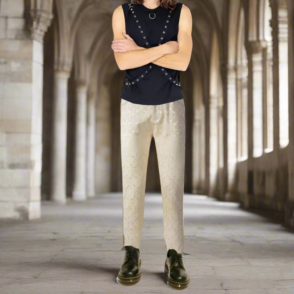 Mens Trousers Pants Brocade VTG Gothic Aristocrat Steampunk Side Braiding Trim