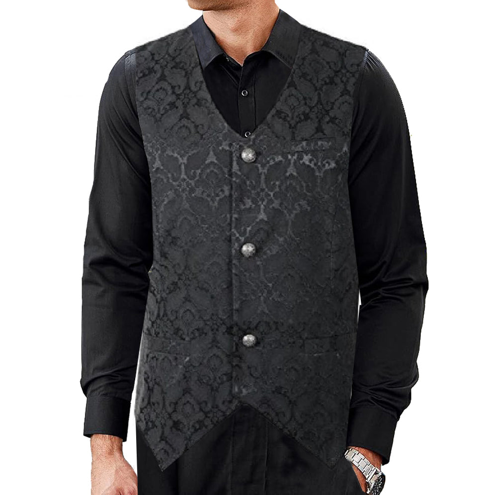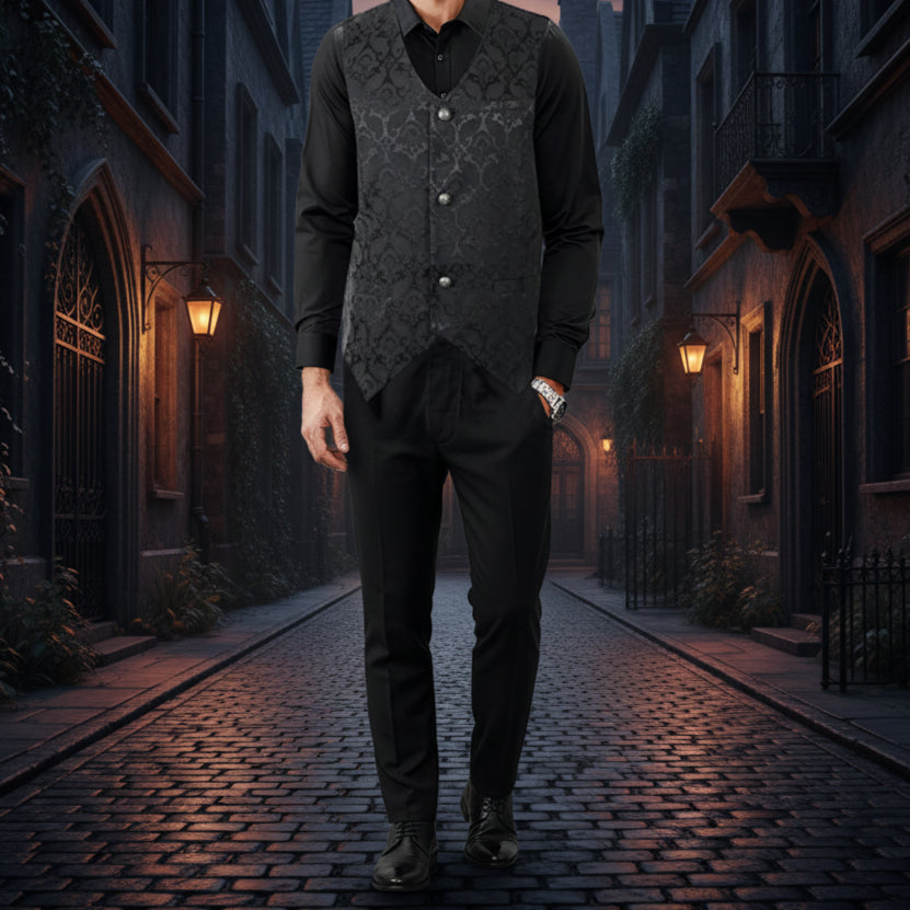 Men's Waistcoat Vest Black Brocade Gothic Steampunk VTG /USA