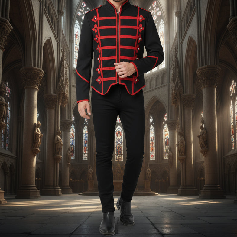 Military Drummer Jacket Black Parade Jacket Goth Punk Adam Ant VTG Style/Black Red Jacket/USA