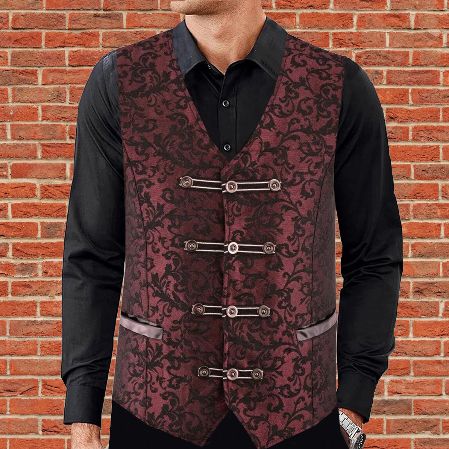Premium Extreme Quality Men's Vest Waistcoat Red Damask Velvet Goth Steampunk VTG/Brocade Vest