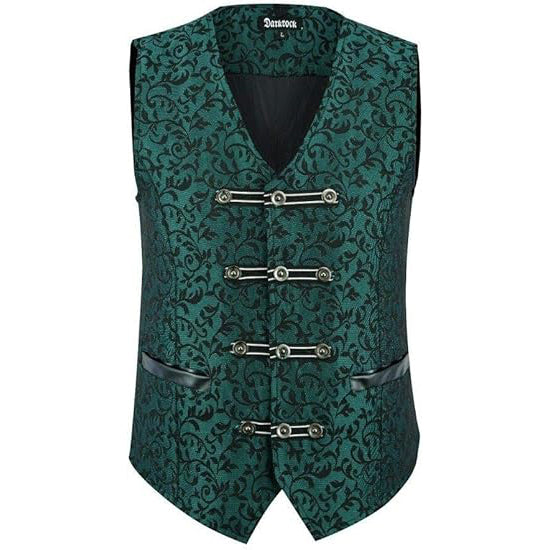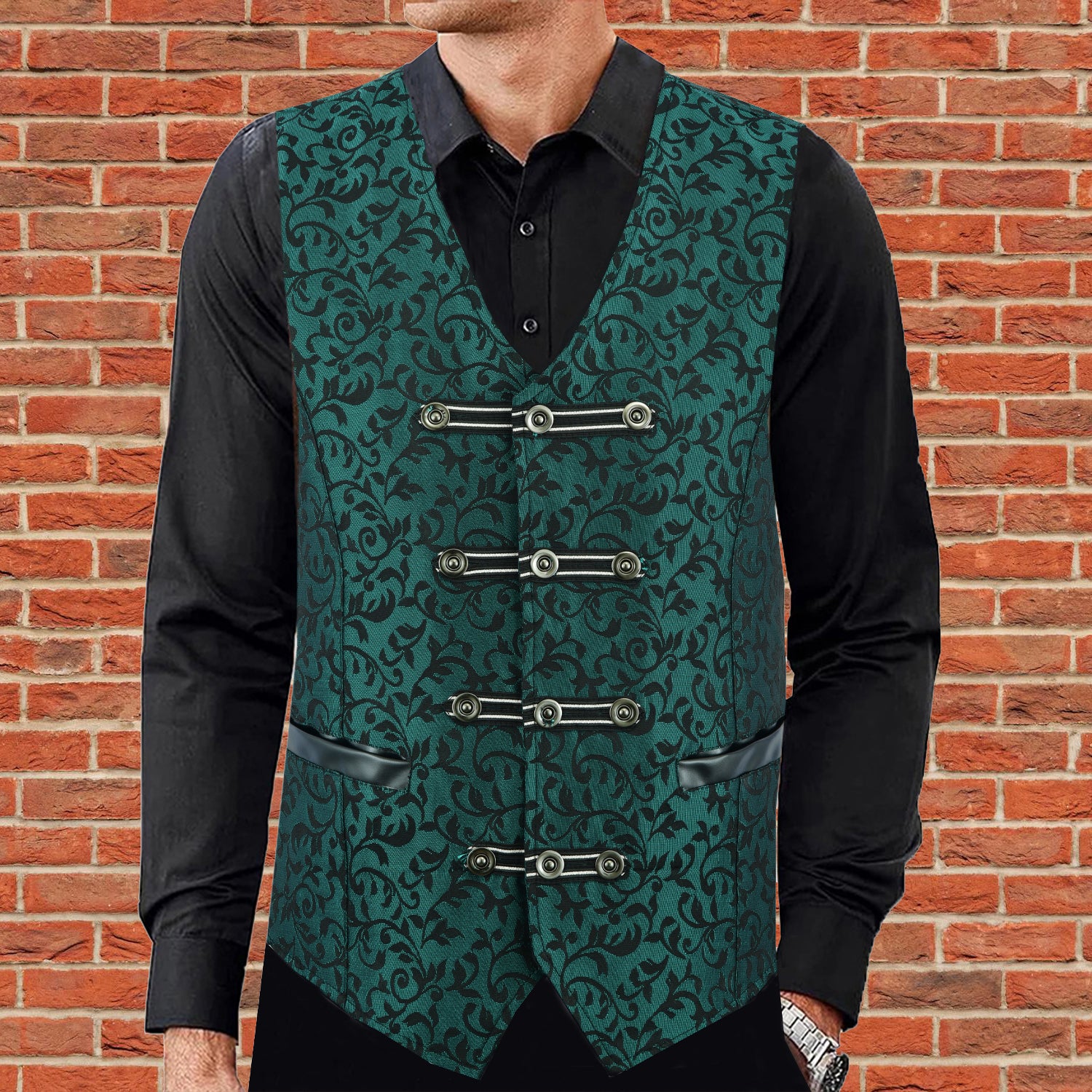 Premium Men's Vest Waistcoat Green Damask Velvet Goth Steampunk VTG/Brocade Vest