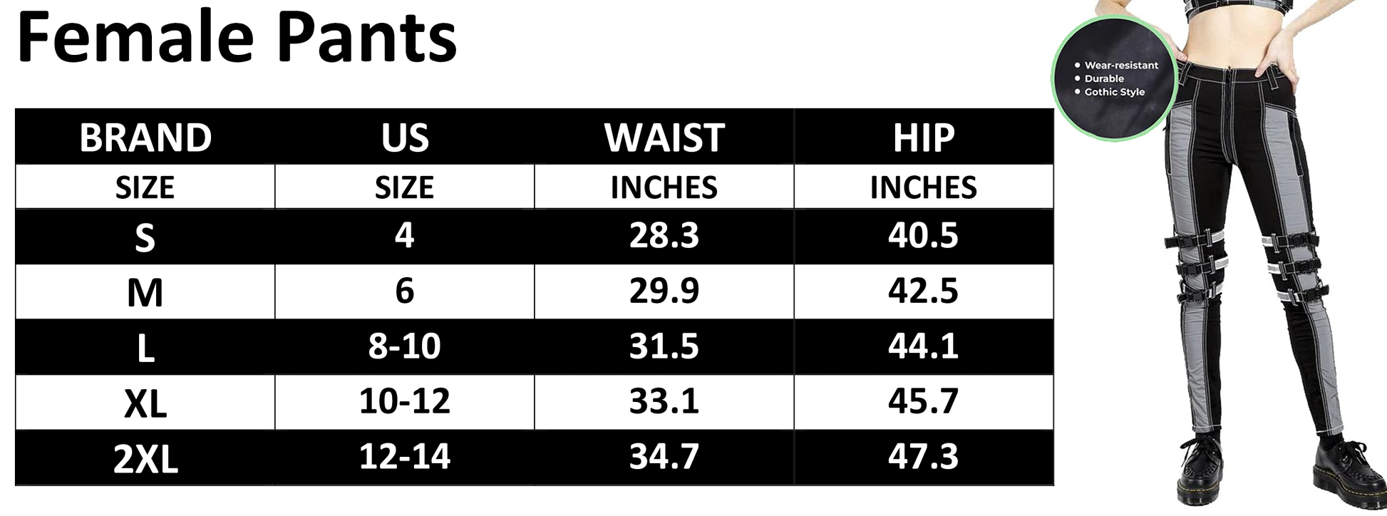 Prime Quality Black Gothic Women's Chains Black Rhinestones Gothic Punk Reflector Panel Emo Pants Straps Pants