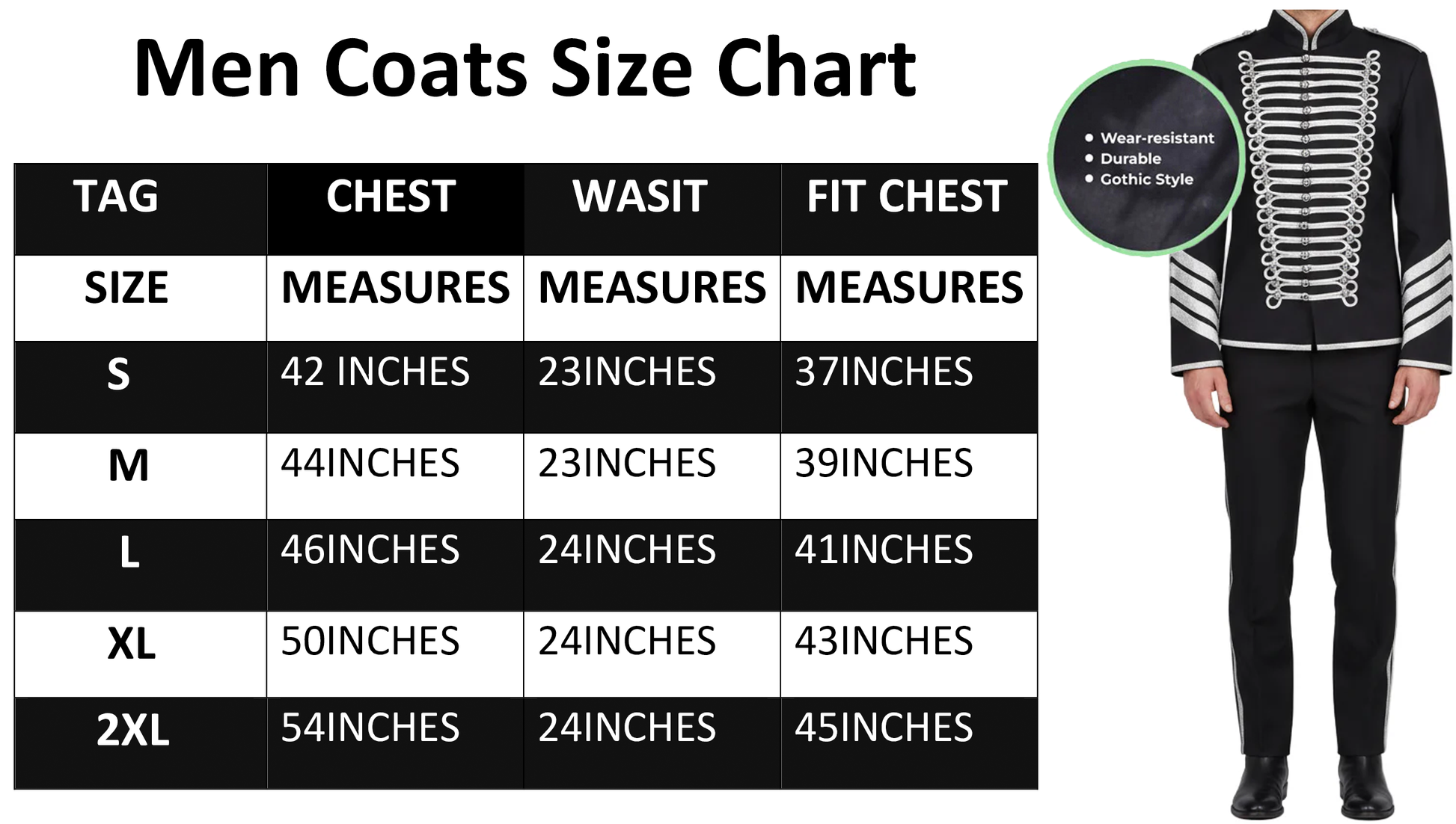 Prime Quality Handmade Men's Gothic Military Hussar Jacket Black Silver/USA