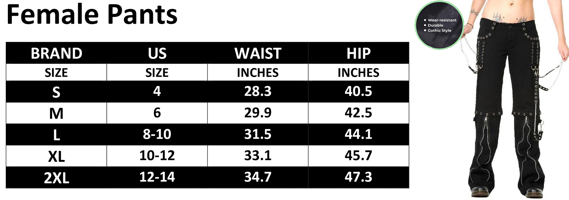 Prime Quality Women's Gothic Bondage Trouser Zip Detachable Shorts Silver Chains Trouser Tripp Pants/USA