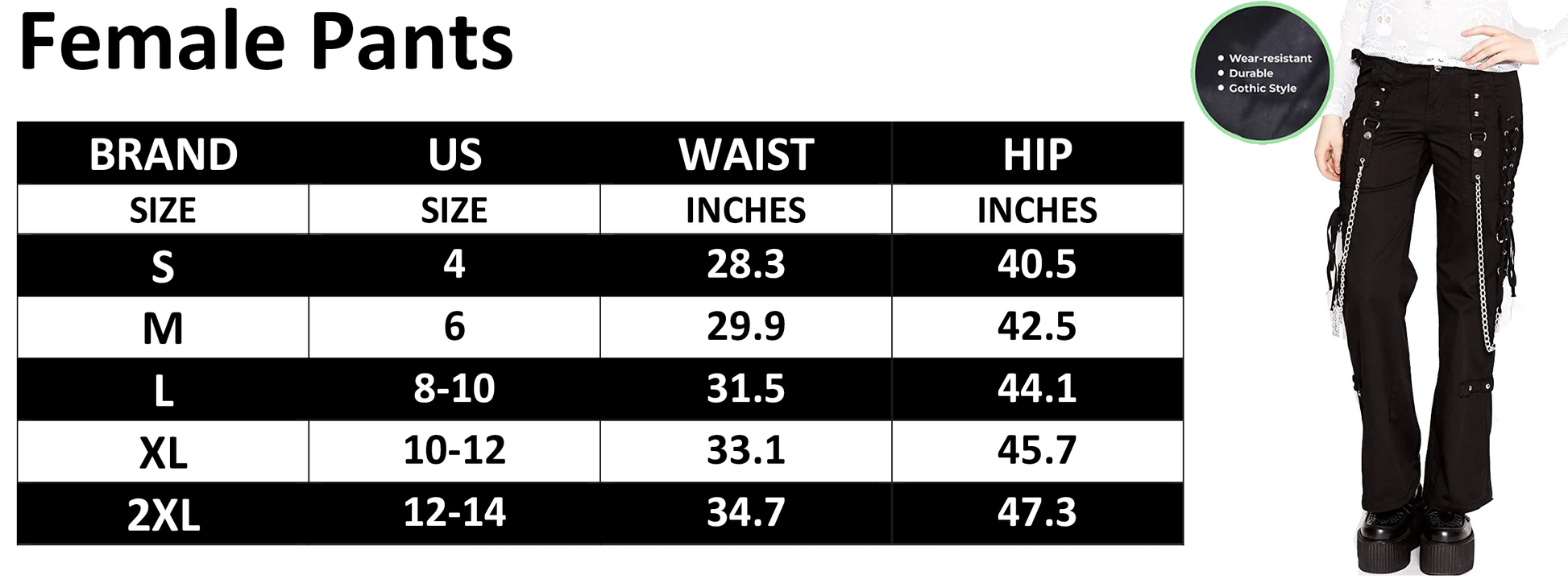 Women Gothic Rave Black Chain Rock Star Straps Metal Punk Show Pants