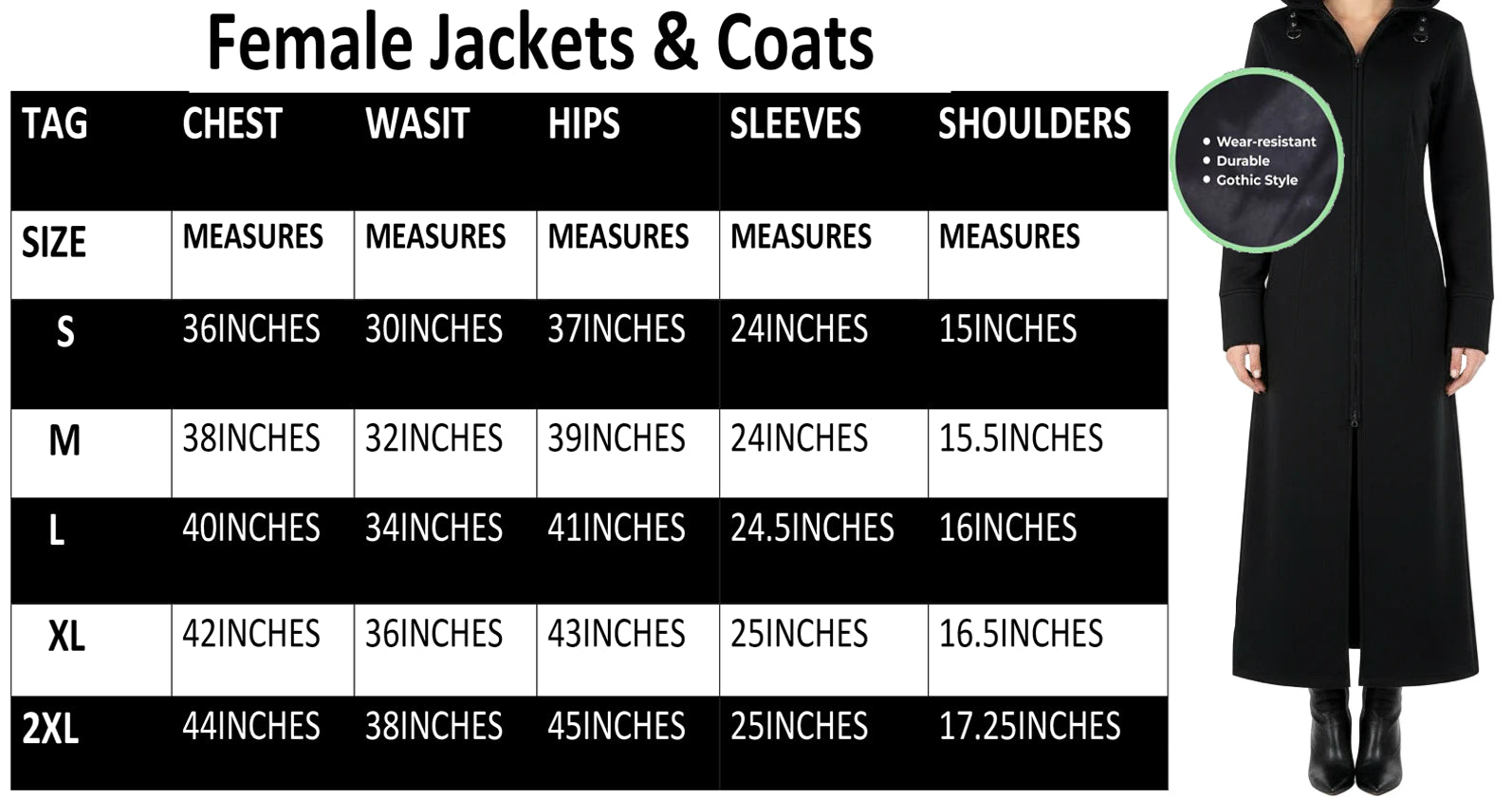 DR#506 Women's Black Fleece Long Zip Up Hooded Raven Steampunk Coat/Jacket with Pockets