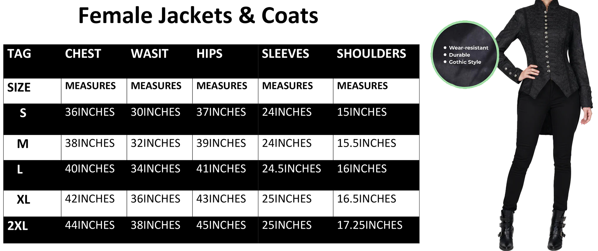 Women's Handmade Black Brocade Gothic Victorian Steampunk Gothic Long Coat/Black Coat